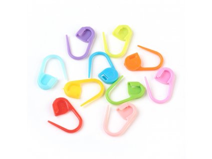 Plastový značkovač, kterým se při háčkování nebo pletení značí začátek řady nebo změna vzoru.