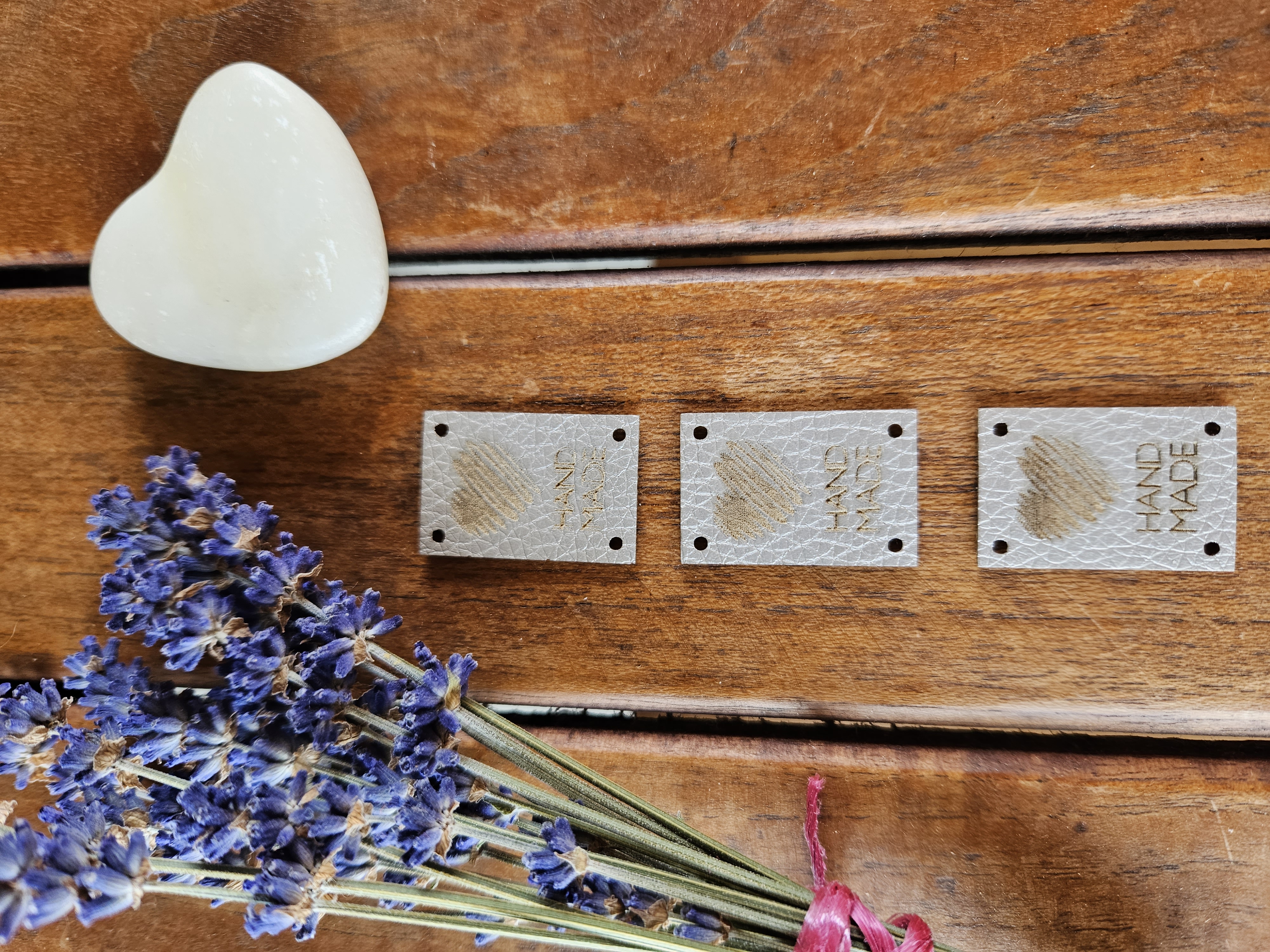 cedulka HAND MADE srdce metalická ekokůže 20 x 30 mm PLATINAskladem 5 ks9 Kč/ ks