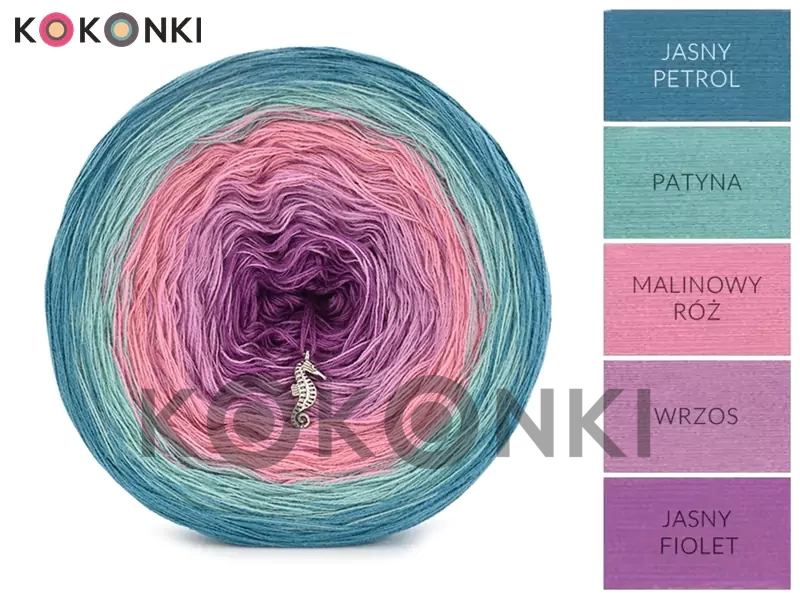 Ručně navinuté klubíčko s návinem 1.500 metrů váží 300 g. Dlouhé barevné přechody s efektem ombre. Nitky nejsou svinuté.