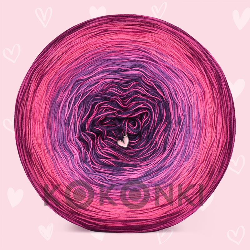 Ručně navinuté klubíčko s návinem 1.200 metrů váží 240 g. Dlouhé barevné přechody s efektem ombre. Nitky nejsou svinuté.