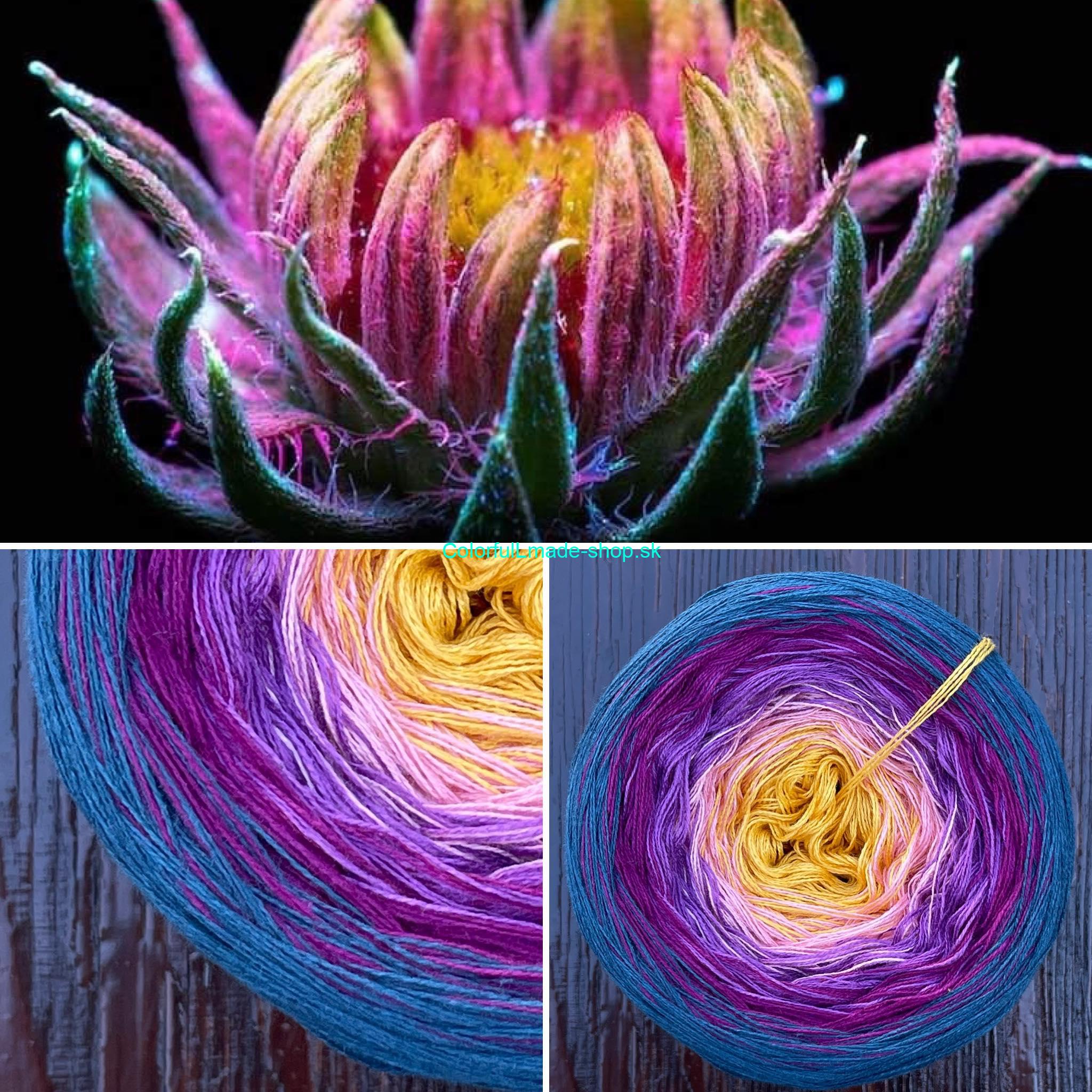 Pro toto klubko jsou charakteristické extra dlouhé barevné přechody.