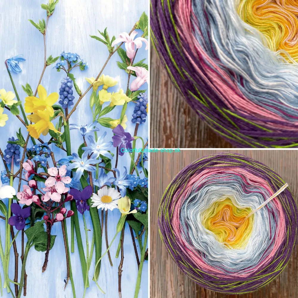 3- nitka / použito 14 barev: odstíny bílé, žluté, zelené, modré růžové a fialové